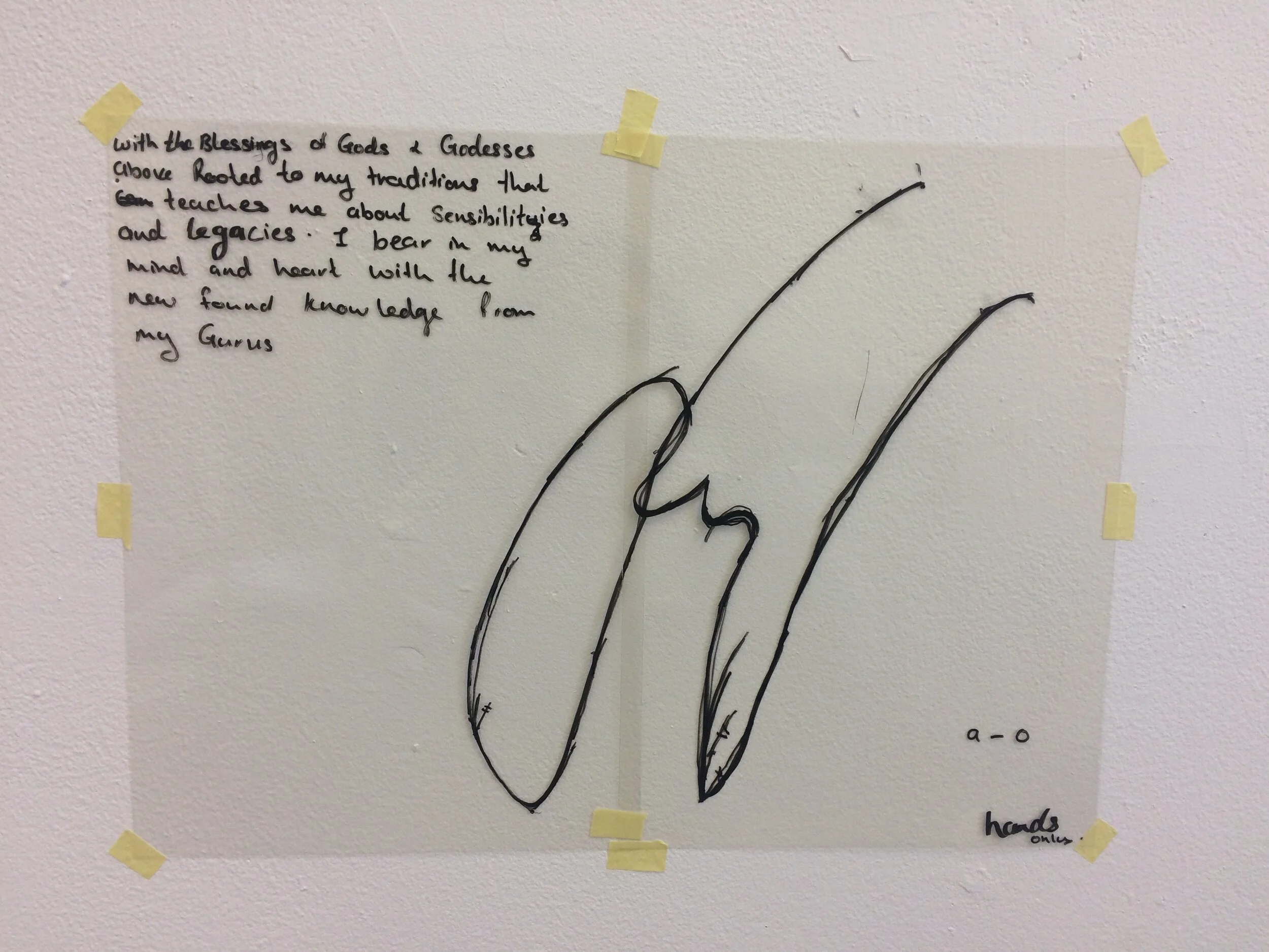 I took a couple of kathak dance lessons, to better understand this dance and to be able to make these sculptural gestures.To capture this dance movement, I performed the action, and a friend helped me to mark wherever my hands, head, arm and legs would move. I used pattern making method ( dress making ) as a way of drawing, to help me make the shapes in various medium. the paters are then deconstructed to make each sculpture/movement.